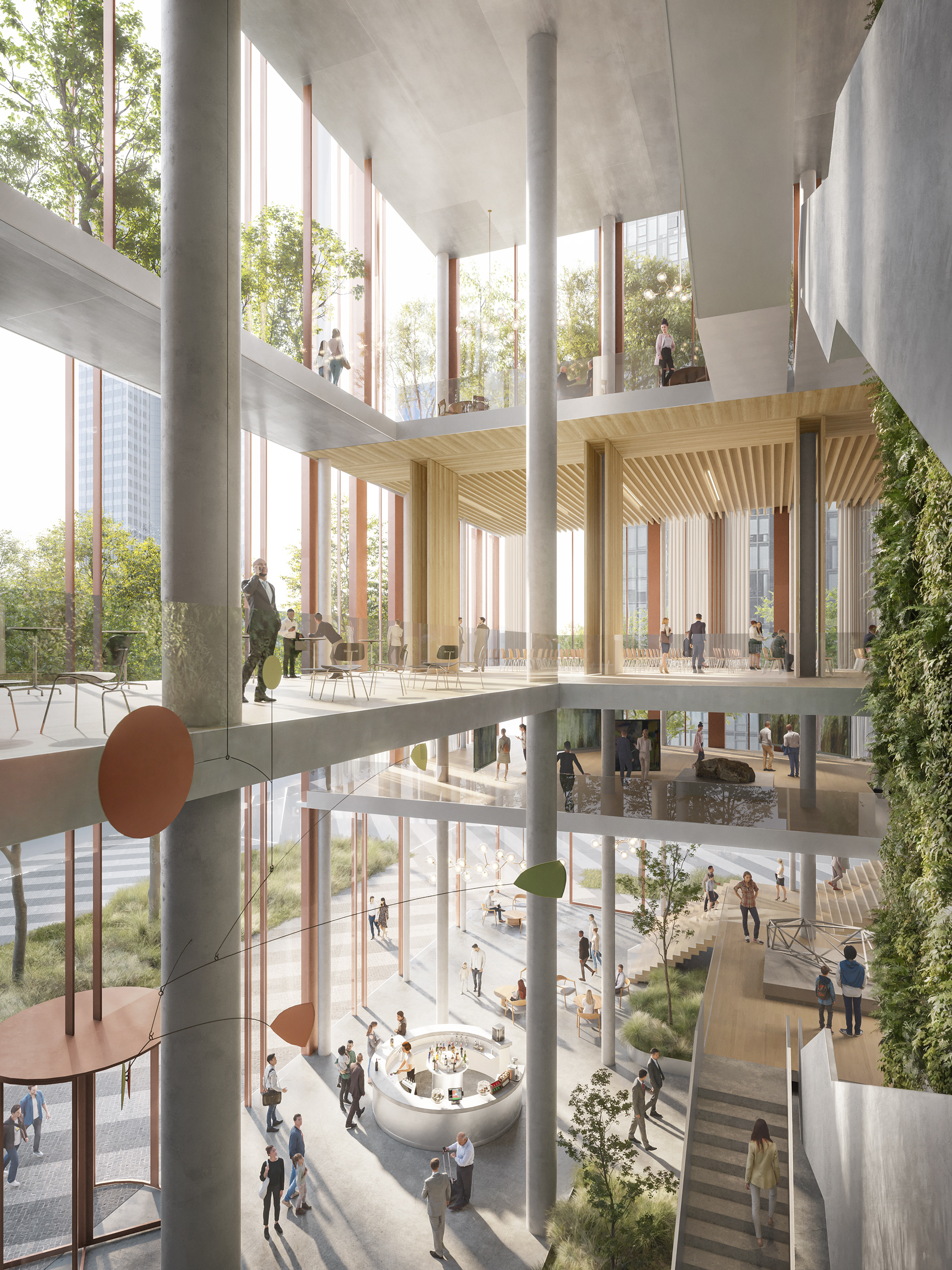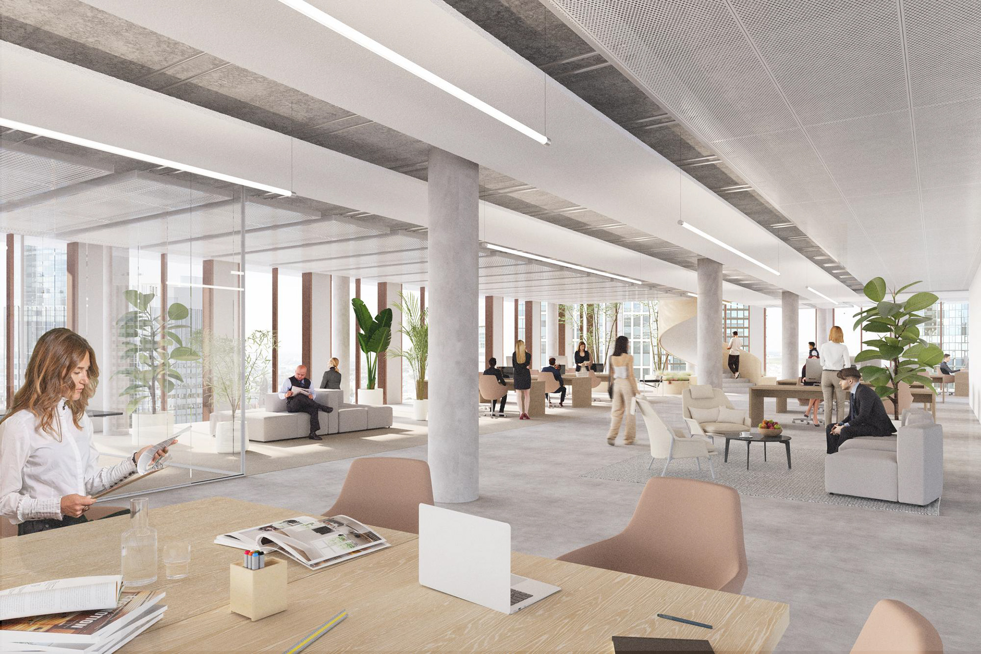 This mix enlivens the ensemble at all times of the day and makes it a place that goes far beyond its function as a high-rise building. The canyon becomes an urban promenade – a public zone in the heart of the building.