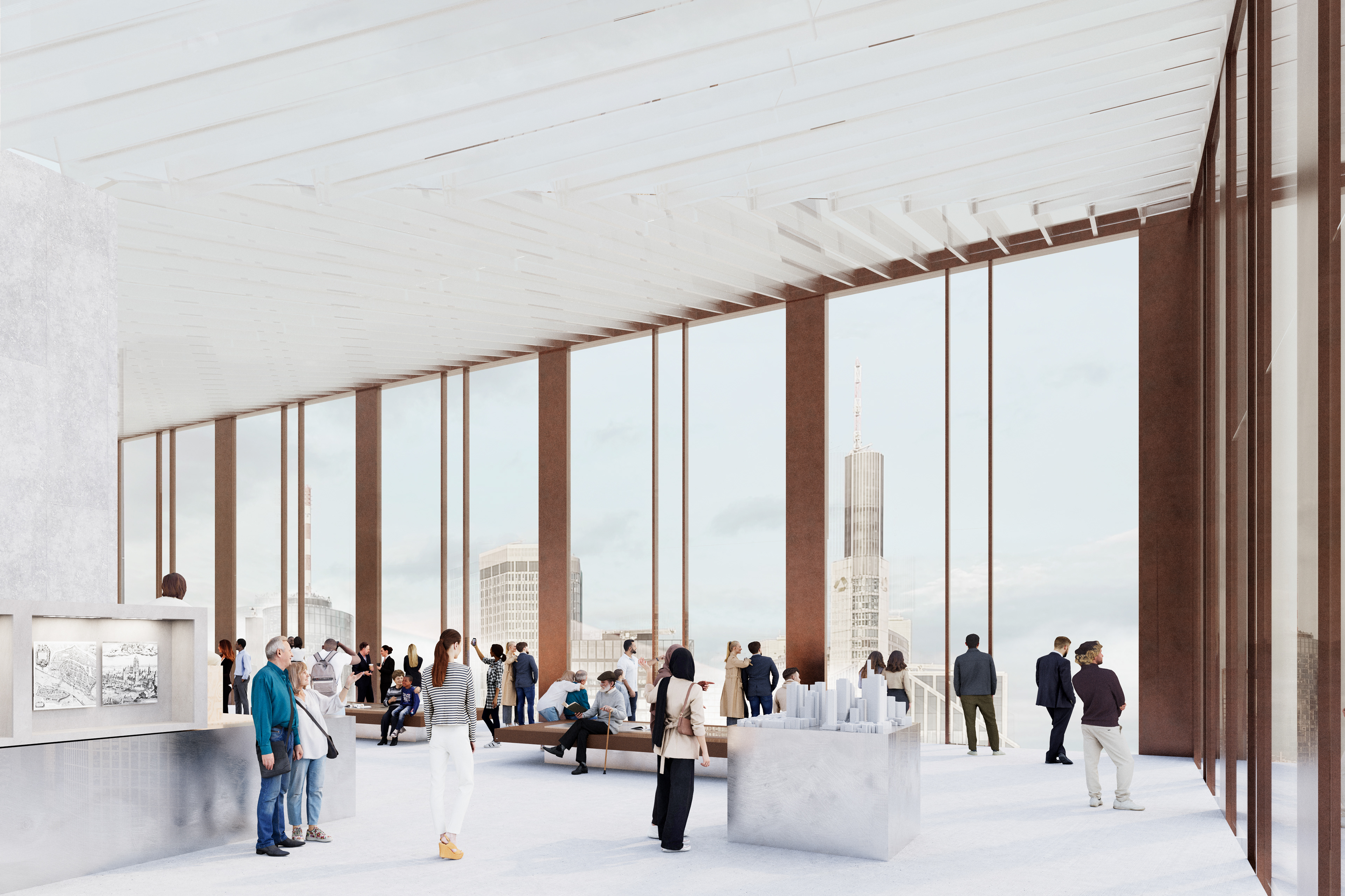 The public base, which is interlinked with the urban space, and the public spire are the outstanding features of the project. Along the ramparts, public uses interlink with the urban space, creating a lively fabric of art, culture, and encounter. A vertical sequence of spaces unfolds over seven floors, opening outwards and upwards: terraces, roof gardens, and air spaces form a sequence of places that have an urban and scenic effect. The central idea is a vertical space—the canyon—which connects the floors visually and spatially. Attractive program areas are lined up along this spatial figure: art and exhibitions, events and conferences, bars and restaurants, fitness, and co-working.